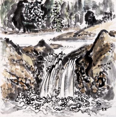 月松, 한지, 먹, 천연혼합채색, 70x138cm, 2010, 개인소장