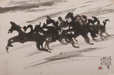 유목동물+인간-문명2023-19, 53×45cm, 한지에 수묵채색 및 아크릴, 2023