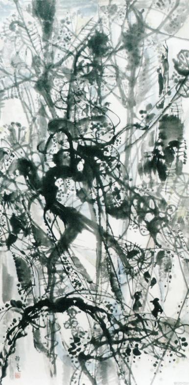 풍경, 한지에 수묵담채, 133x68cm, 1950