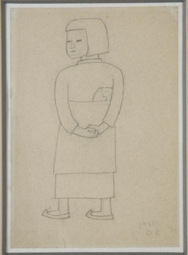 절구질하는 여인, 1957, 캔버스에 유화물감, 130×97cm, 국립현대미술관 이건희컬렉션 ⓒ박수근연구소