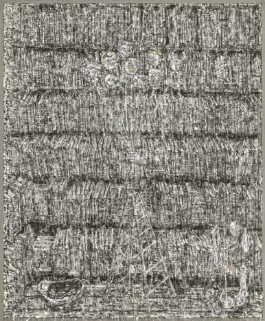 민법(802-817page), 4m인공진주, 접착제, 아크릴물감, 나무패널, 153x97cm, 2012