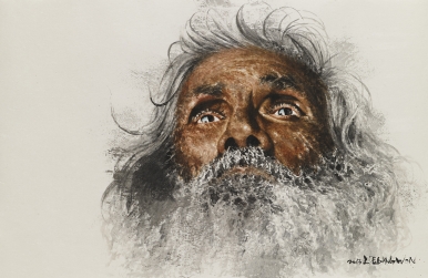 Spiritual Leader under a Tree, 1982, Ink on Hanji, 50 × 34 cm