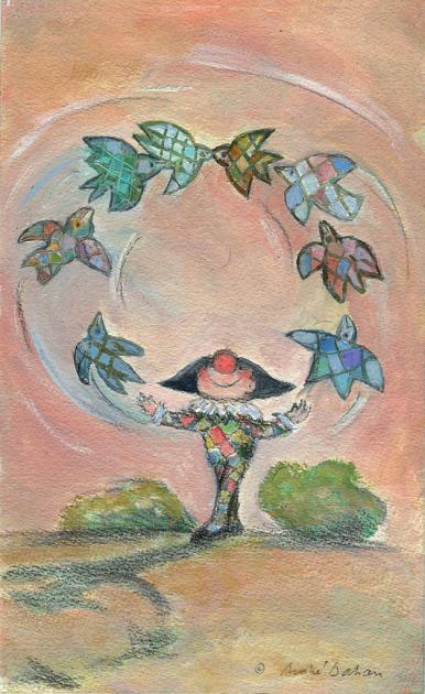 피에로가 된 자파 2, 1996, 종이에 오일, 23.5x14.5cm
