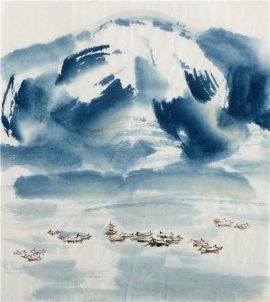 모락산-안양교도소에서, 1969, 종이에 수묵채색, 41.5 x 64.5cm © Lee UngNo / ADAGP, Paris – SACK, Seoul, 2024