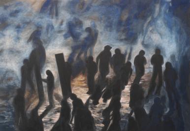 무희자연, Indian ink, soldering iron, coating on Korean paper, 190x120cm, 2009