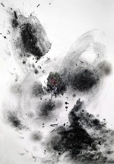 별먼지, 장지에 먹 채색, 320x130cm, 2009