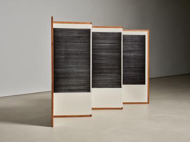 Folded Space, Sumi-ink drawing on six-fold folding screen, 100x240cm, 2020
