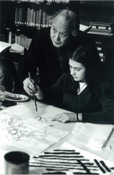 백남준, 국립현대미술관 방문(왼쪽부터 남중희, 백남준, 김원), 1986, 국립현대미술관 미술연구센터 소장