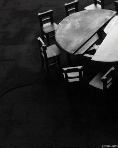 Domestic Occasion (부분이미지), 테이블, 바이스, 의자 12개로 이루어진 설치, 흑연, 철, 나무, 레진, 가변크기, 2010