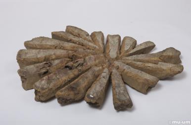 적의 2369, 2023, Fossil and stainless steel, 24 x 27 x 121 (h) cm, 9.4 x