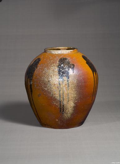일본 <적토에 흑유가 흐르는 문양이 있는 호>, 14세기