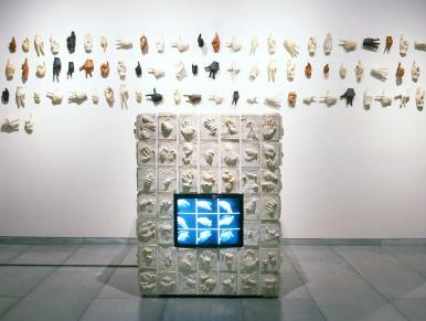 보여지는 손과 보는 손 / Hands to be seen and to be read, 21Monitor. mixed media. 450 x 350cm. 1998