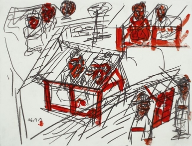 어디서 본 듯한 얼굴, 1980, 종이에 펜, 39x54cm