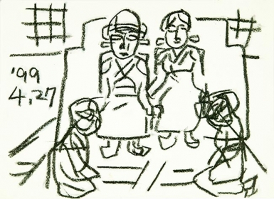 공원에서 At the Park, charcoal and acrylic on paper, 50.9x35.5cm, 2021