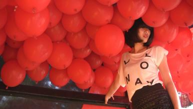기쁜 우리 젊은 날_ 2022, 비디오(강예은 공동연출): 2채널 비디오, 컬러, 사운드, 25분; 회화 설치(by 함미나), 가변크기. 작가 소장. 국립현대미술관 지원으로 제작