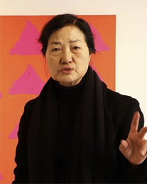 뒤) 김학량, 한국현대서예 스테인드글라스체 연습: “존경, 사랑” 등 4점 연작(현직 대통령 취임사, 취임 100일 기자회견, 광복절·3·1절 기념사, 신년사 등에서 뽑은 문구)