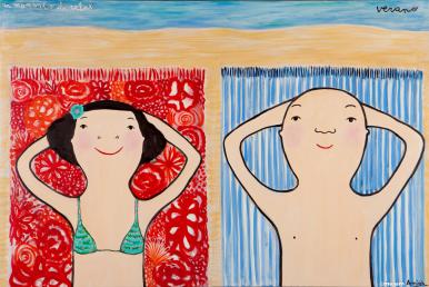 단결은 배게 맡에(Solidarity is under the pillow), 캔버스에 아크릴, 잉크, 크링크 마커, 200x150cm, 2012