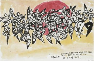 군상 People, 한지에 수묵담채, 23x34cm, 1978
