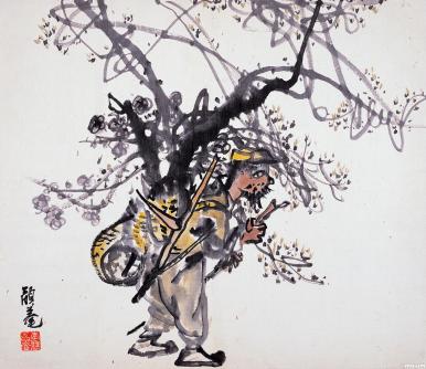 꽃장수, 한지에 수묵담채, 47.2x55.3cm, 1950, 이응노미술관