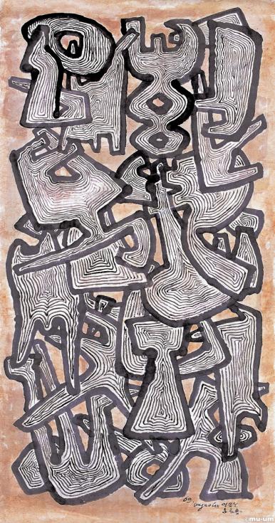 구성, 한지에 채색, 133x68cm, 1969, 이응노미술관
