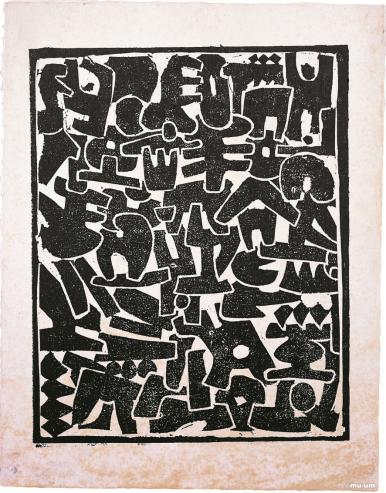 구성, 한지에 판화, 28.5x36.5cm, 연도미상, 이응노미술관