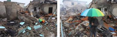뒤엉켜진, 패널에 석분에 안료, 시멘트, 나무에 먹과 염료, 흑색 도장 유리, 종이 테이프, 100 X 80cm, 2010