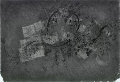 무심한 풍경, 종이에 목탄, 75x105.5cm, 2016