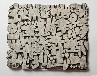 살을 에는 듯한 시선, 1968, 판넬에 석고, 호분, 수지, 수채, 아크릴, 162x132cm