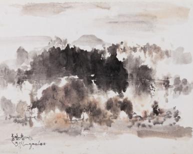 용문龍門, 1980, 74.5×96cm, 종이에 수묵담채, 이천시립월전미술관