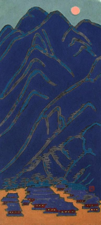 구성, 1963년, 한지에 수묵담채,138x69cm