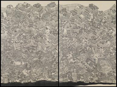 무제(Untitled-017), 가변설치, 신문용지, 볼펜, 연필, 2009