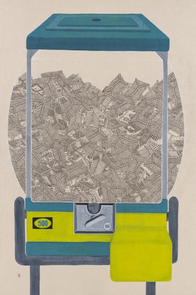 금이빨을 잃어버린 자가 찾아온 곳 Where the man who lost his golden tooth headed for, 130x135cm, Graphite on paper, oil color, 2018