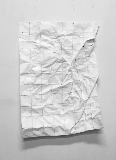주름진 벽, 종이천, 실, 와이어, 110x75cm, 2018 ⓒ전우연