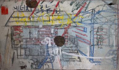 에너지 흐르는 집1, 50.5x86.5x12cm, Acrylic, oil bar on cement, 2020