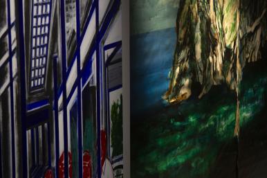 (왼) S.Bahn-베를린 (오) 동도에서 본 서도, (왼) 캔버스에 아크릴릭, 200x200cm, 2008 (오) 면에 아크릴릭, 390x480cm, 2002