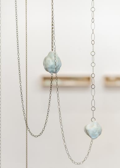 번져가는 단상의 움직임, 가변크기, 비즈왁스, 수지, 황동체인, 2021, 세부
