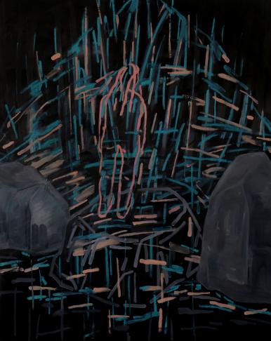 박제된 울산바위, 1993, 캔버스에 목탄, 아크릴릭, 유채, 227x162x(3)cm